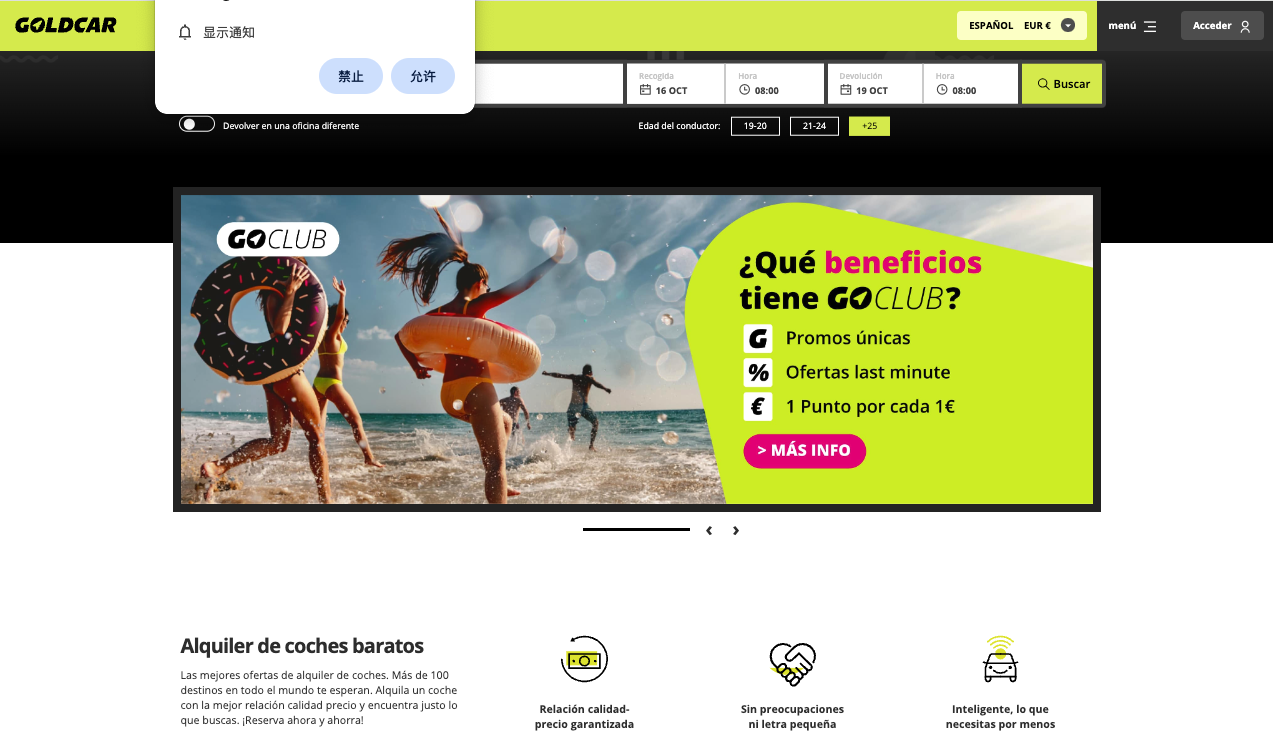 La plataforma en línea de Goldcar es intuitiva y permite reservar en pocos pasos. Solo elige la ubicación de recogida, selecciona el tipo de vehículo que necesitas y define las fechas de tu viaje. Además, puedes añadir seguros y otros extras para viajar con mayor tranquilidad.
